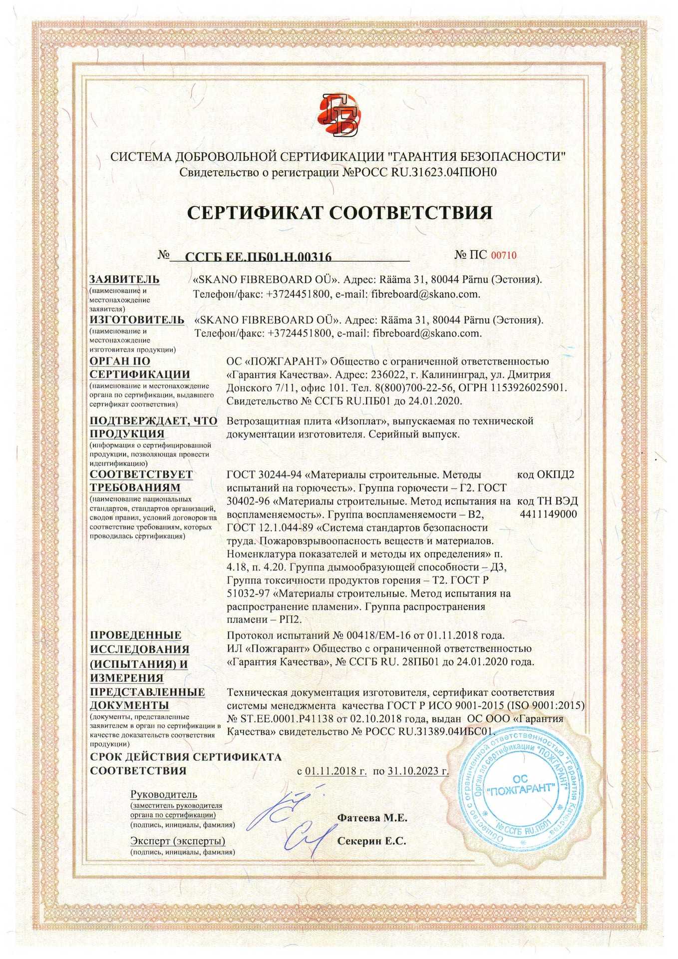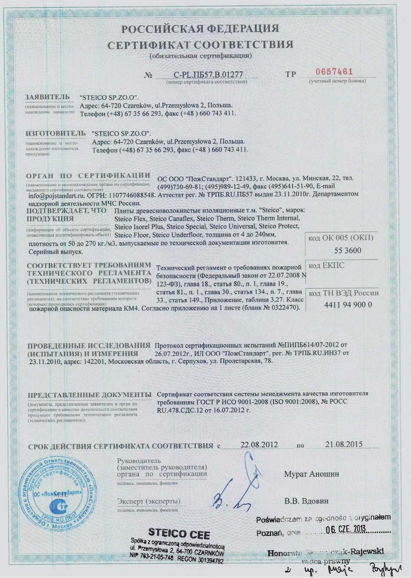 Сертификаты продукции